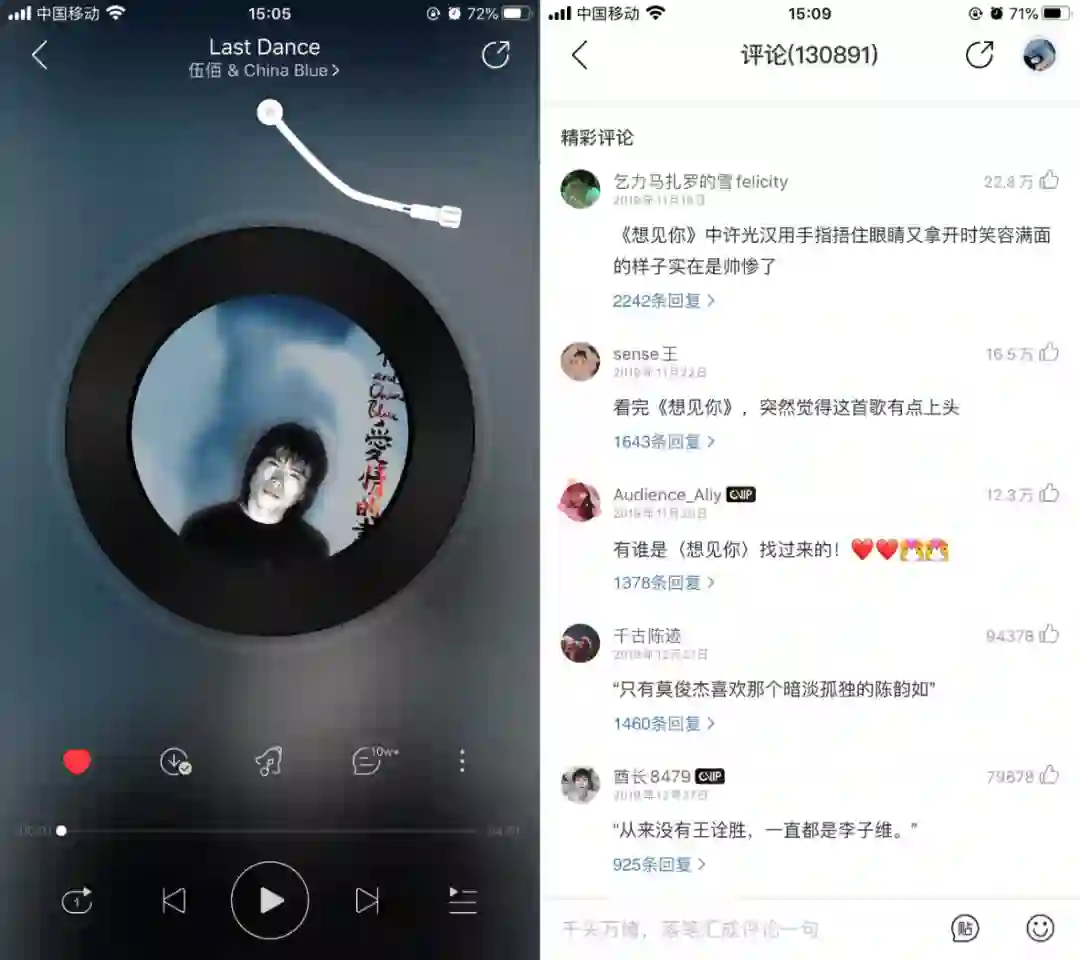 2020年开年,随着《想见你》大火,其中的插曲之一、伍佰的《Last Dance》也获得了空前的热度,到现在,歌曲在网易云音乐的评论量已经超过13万,而在这之前好多年里,评论只有30条。