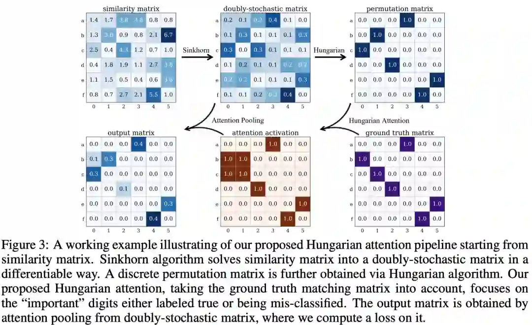 Yu 等人介绍了他们的深度匹配框架,这个框架具有两个比较鲜明的特征:聚焦在聚合边缘嵌入、引入一个新的匈牙利注意力(Hungarian attention)。匈牙利算法是解决分配问题的经典方法,但它不是可微分的。