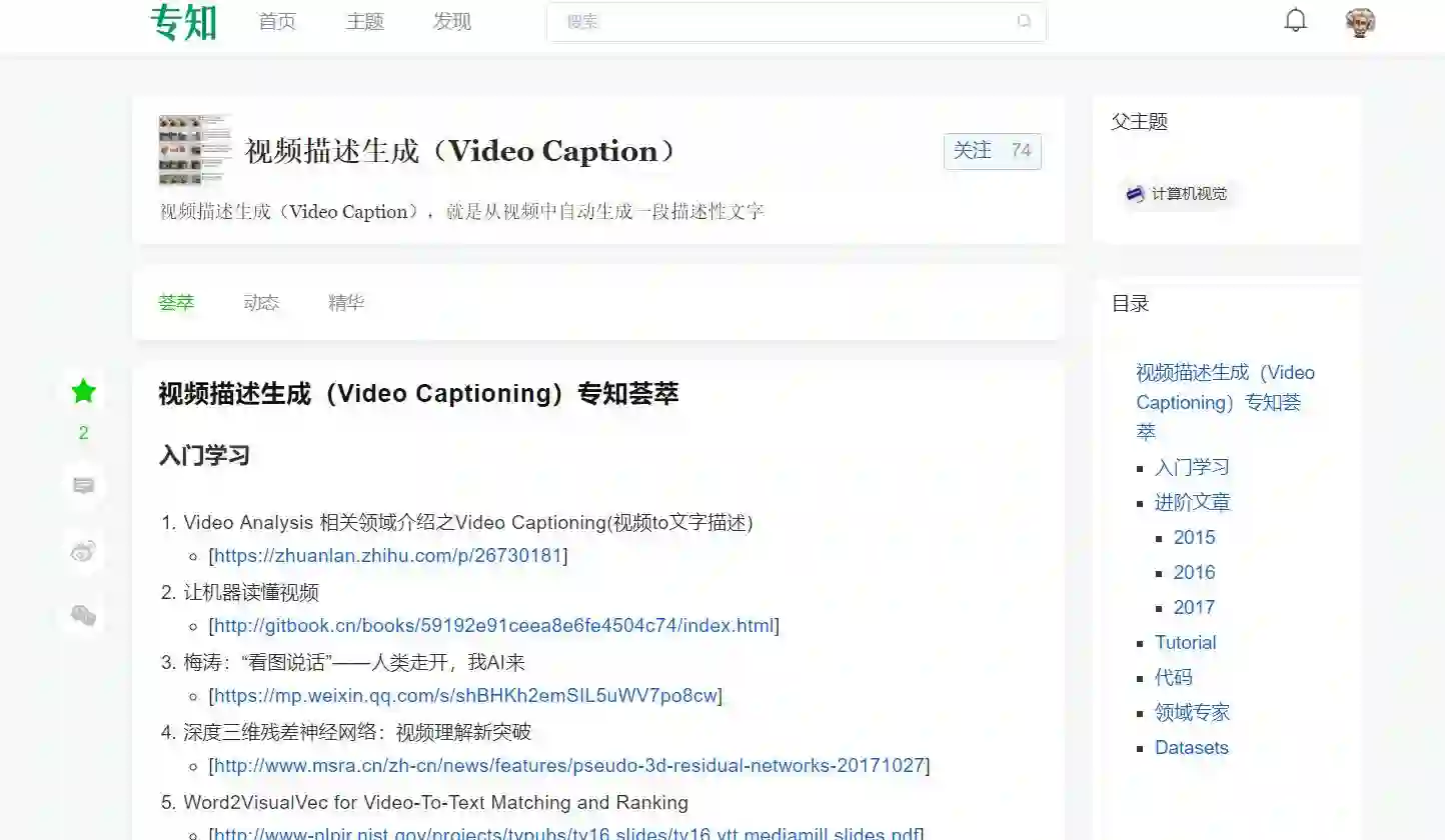 请PC登录www.zhuanzhi.ai或者点击阅读原文,注册登录,顶端搜索“视频描述生成” 主题,获得专知荟萃全集知识等资料,直接PC端访问体验更佳!如下图所示~