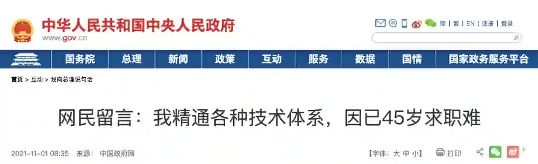 近日,一位45岁网民留言称,自己精通各种技术体系,辞职回家半年后再回来寻找工作机会的时候,连个面试机会都没有。
