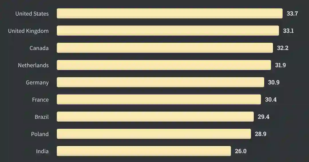 结果显示,北美和西欧的开发人员往往年龄偏大,并且拥有更多的编码经验。