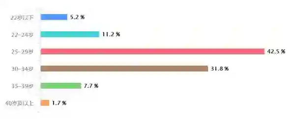 在国内,程序员的年龄分布比例最多的是在34岁以下,占了90%多。