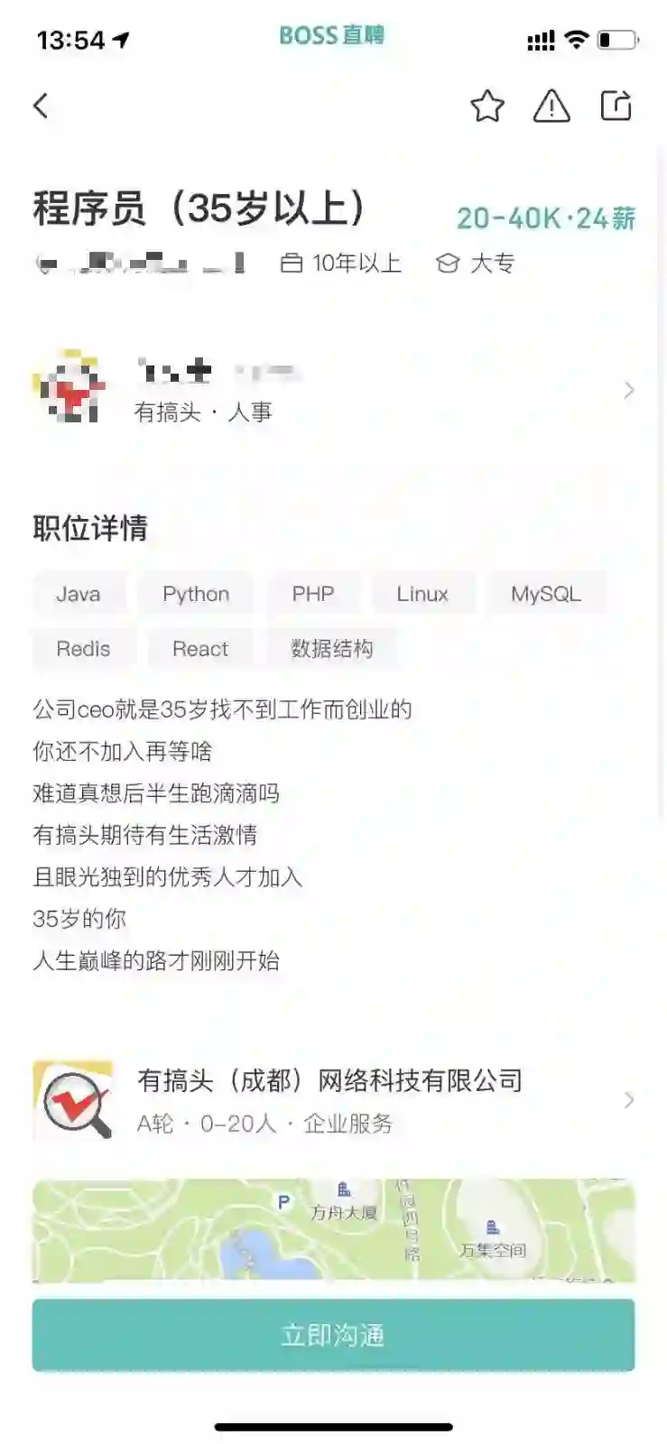 一位运维工程师在脉脉上讲述他电话面试阿里的经历,“刚开始聊的挺好的,当听到我的年龄是 35 的时候,感觉面试官比我还紧张了”。最终,不出意料,他收到了拒绝邮件。