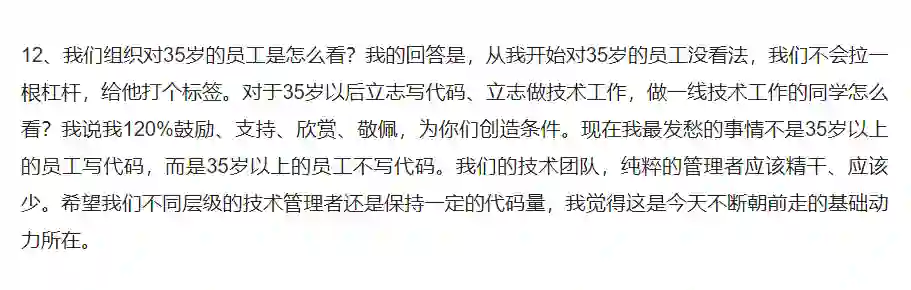 “35 岁不转管理就‘混吃等死’”,很多程序员觉得到了 35 岁、40 岁,再不转管理就来不及了。