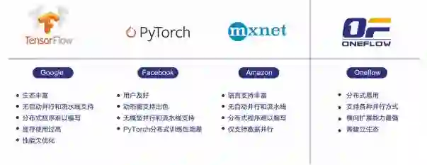 OneFlow 历经两年的研发,2018 年 10 月份才推出 1.0 版本,还是一个很年轻的系统,目前正在客户的生产环境里面试用和迭代。实事求是的讲,我们在模型的丰富程度,易用性,多语言支持等方面还有比较大的提升空间,目前是落后于其它框架的。但是,OneFlow 在企业级大规模应用上是称得上遥遥领先的:(1)分布式最容易使用,用户在写程序的时候是感受不到多机和单机的区别的;(2)OneFlow 支持数据并行,模型并行和流水并行,而其它框架只支持最容易支持的数据并行;(3)OneFlow 在分布式训练时的扩展能力,加速比是最优秀的。这些特点也正是 OneFlow 作为企业级深度学习框架,比已有开源深度学习框架优秀之处。