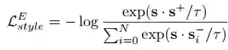 虽然L_MI提供了一种自动生成输入图像的域标签方法,但是当图像的分辨率高于64x64或样本变得复杂多样时它无法放大。因此我们作者向引导网络中添加辅助支路Estyle并施加对比损耗来克服这一点,公式如下: