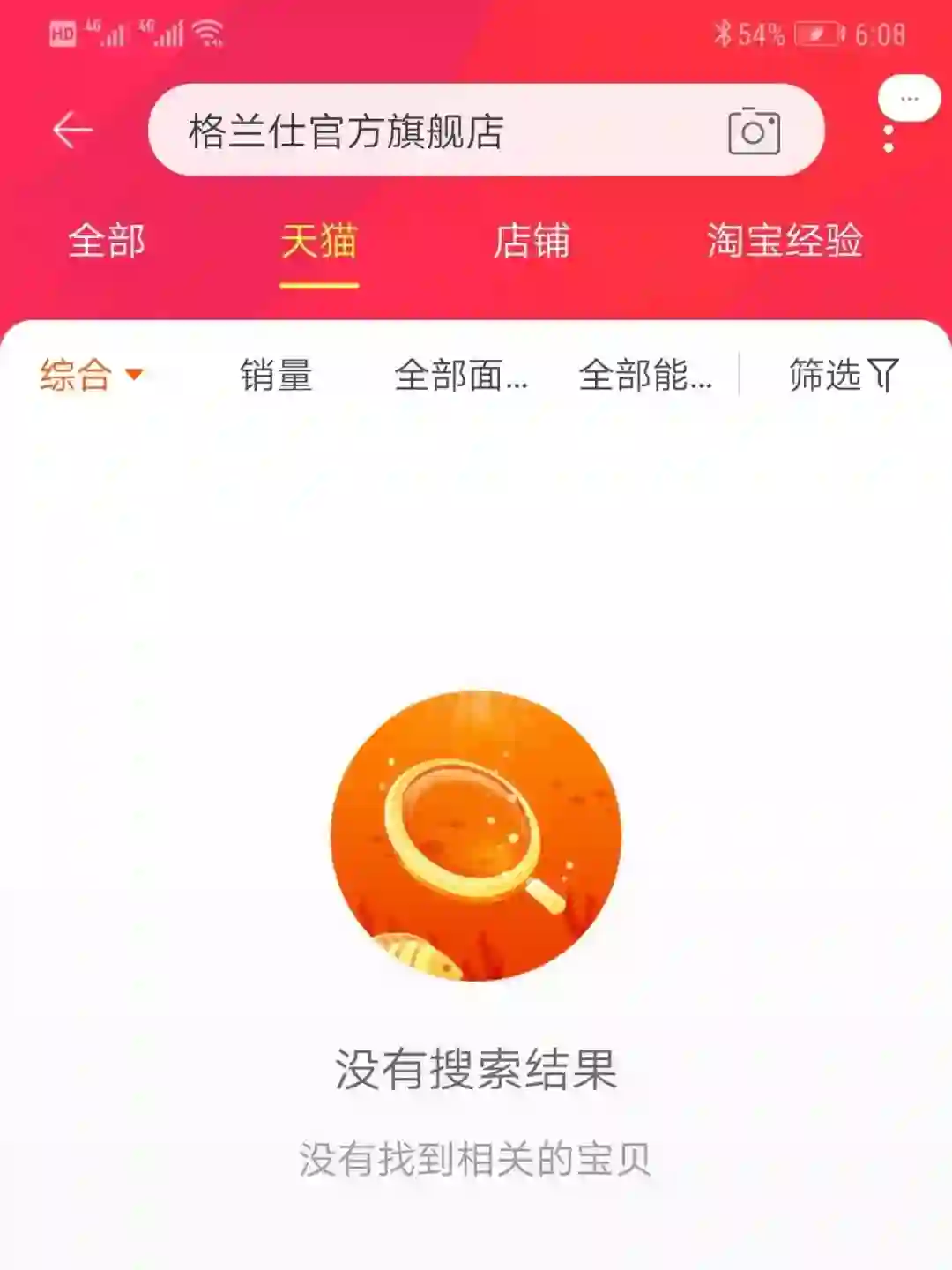而当记者在天猫输入关键词“格兰仕官方旗舰店”时,页面依然显示没有搜索结果。