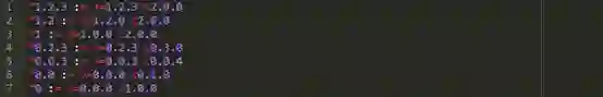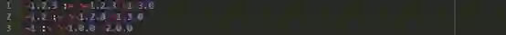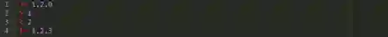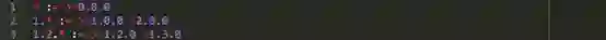 多个版本需求也可以用逗号分隔,例如:=1.2,<1.5。