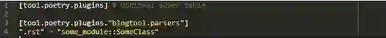 Poetry支持任何插件,它们的工作原理类似于setuptools的入口点。为了匹配setuptools文档中的示例,您需要使用以下命令: