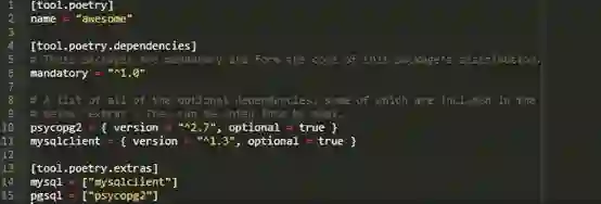 pyproject.toml中的tool.poetry部分由多个部分组成。
