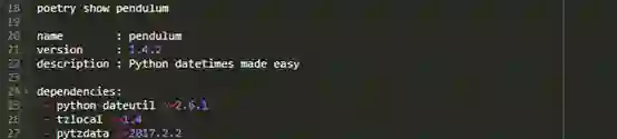 如果当前目录中有pyproject.lock文件,它将使用来自那里的指定版本。这确保每个使用库的人都能得到相同版本的依赖项。