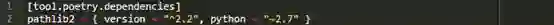 在默认配置情况下,Poetry会去寻找PyPi上的依赖关系。在这时,只需要提供名称和版本的字符串。