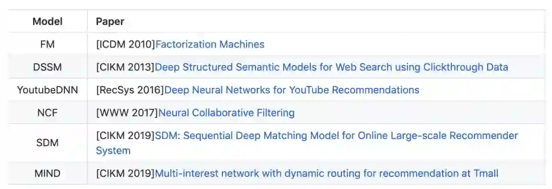 提供了若干主流的深度召回匹配算法的实现,并支持快速导出用户和物品向量进行ANN检索。非常适合同学们进行快速实验和学习,解放算法工程师的双手!