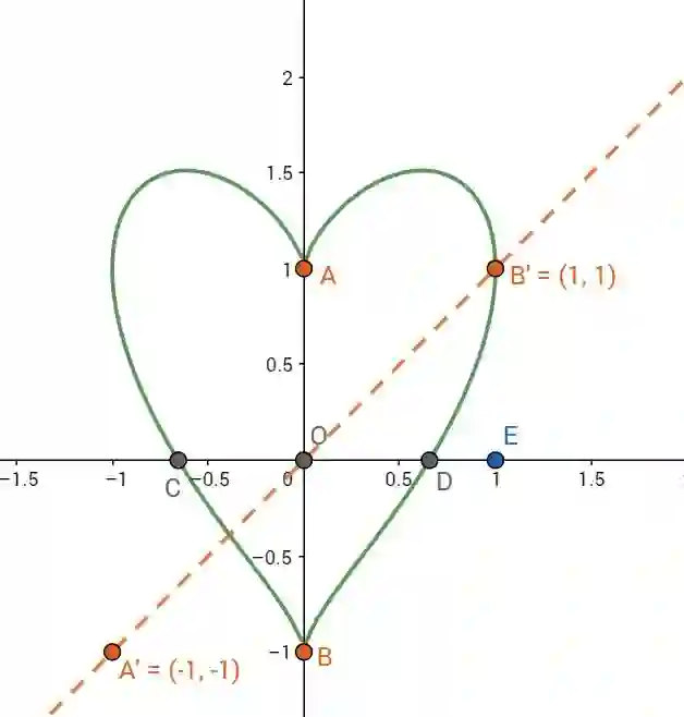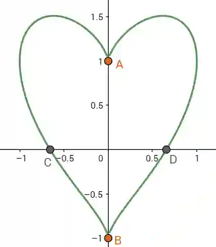 如果文字有点绕,我们通过图像来说明一下秩的几何意义吧。以心形线为栗子,标志一些特殊的点,方便等一下使用。