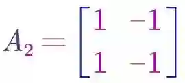 可以看出,我们得到的图形(直线)是一维的,所以矩阵A2的秩就是1。