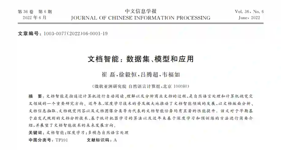 微软亚洲研究院最新《文档智能:数据集、模型和应用》综述
