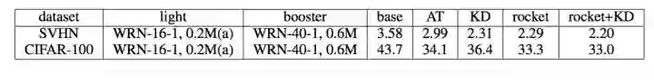 实验方面,我们验证了方法中各个子部分的必要性。同时在公开数据集上,我们还与几个teacher-student方法进行对比,包括Knowledge Distillation(KD), Attention Transfer(AT)。 为了与目前效果出色的AT进行公平比较,我们采用了和他们一致的网络结构宽残差网络(WRN)。 实验网络结构如下: