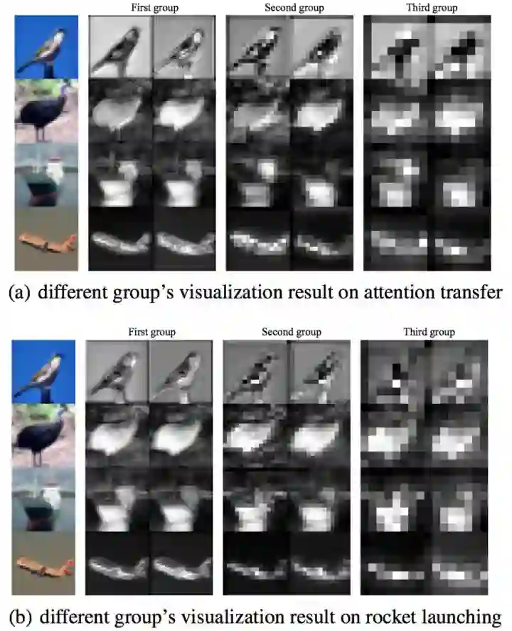通过可视化实验,我们观察到,通过我们的方法,light net能学到booster net的底层group的特征表示。
