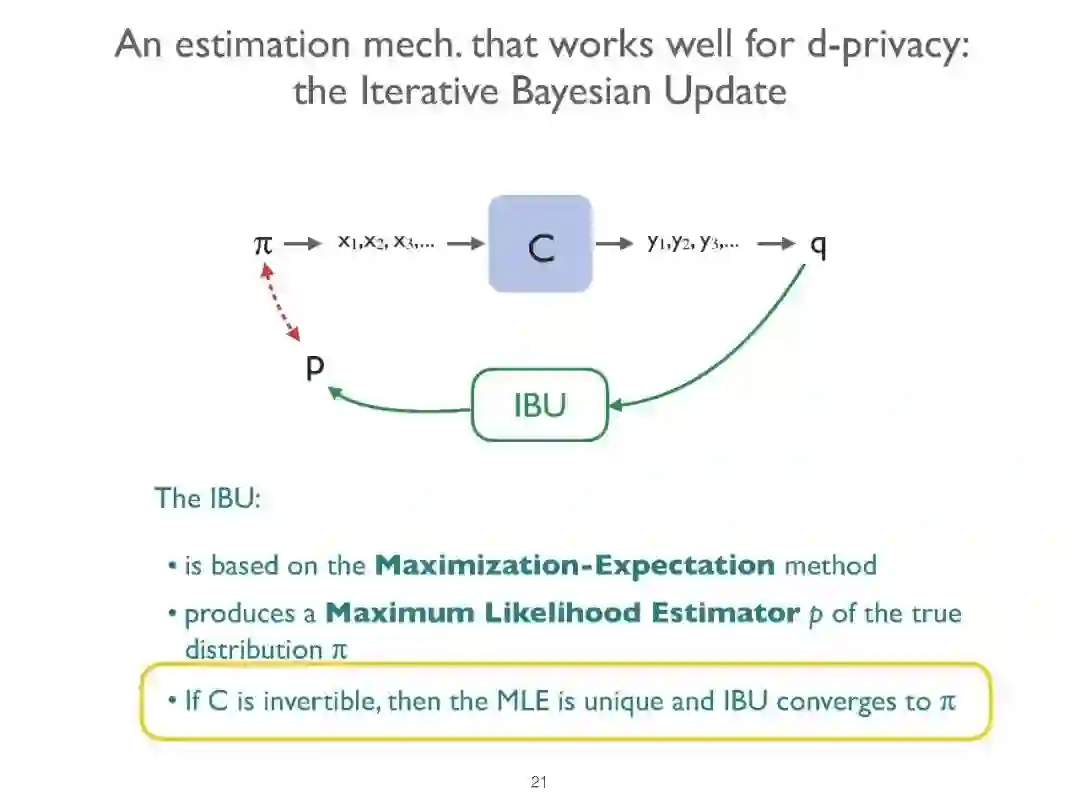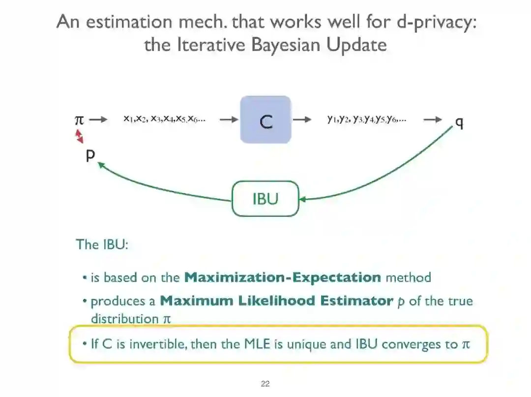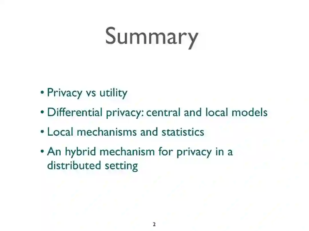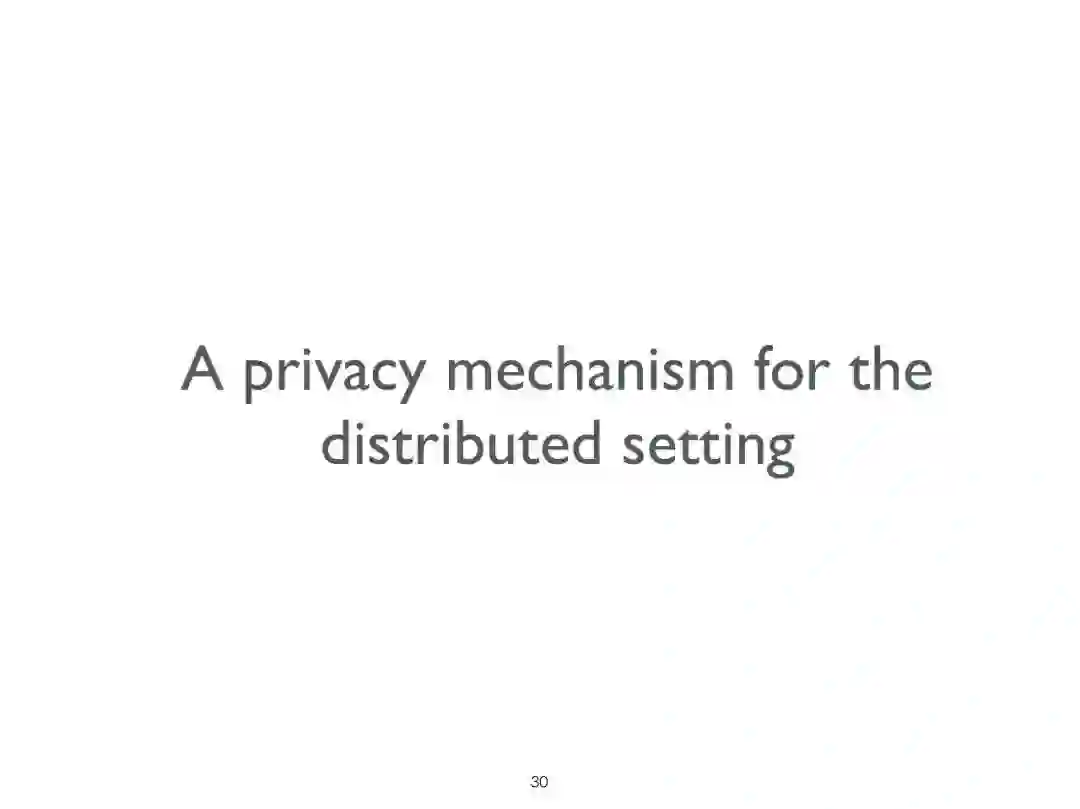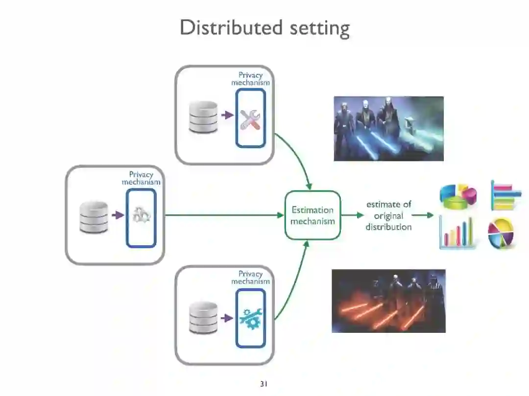 差分隐私(DP)是保护隐私的敏感数据,同时保持其实用性的一个最成功的提议。在这次演讲中,我们将简要介绍DP框架,然后提出一个新的机制来实现分布式DP。也就是说,在一个数据收集分布在不同组织中的场景中,这些组织不希望公开原始数据,而只希望公开它们经过脱敏的版本,并且仍然可以从合并来自不同来源的信息的优点中获益。我们提出的机制特别适合于统计期望最大化方法的一种变体的应用,由于这种方法,原始数据的效用可以被检索到一个近似的检索度,而不影响原始数据所有者的隐私。