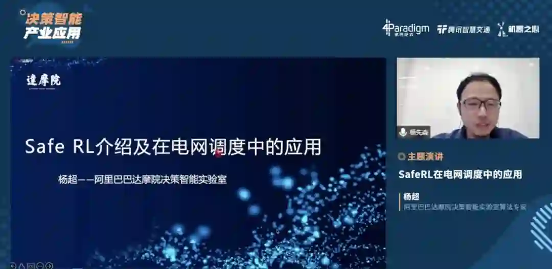 5 月 24 日,在机器之心举办的「决策智能产业应用」在线圆桌论坛上,阿里巴巴达摩院决策智能实验室的杨超发表了主题演讲《Safe RL 介绍及在电网调度中的应用》。