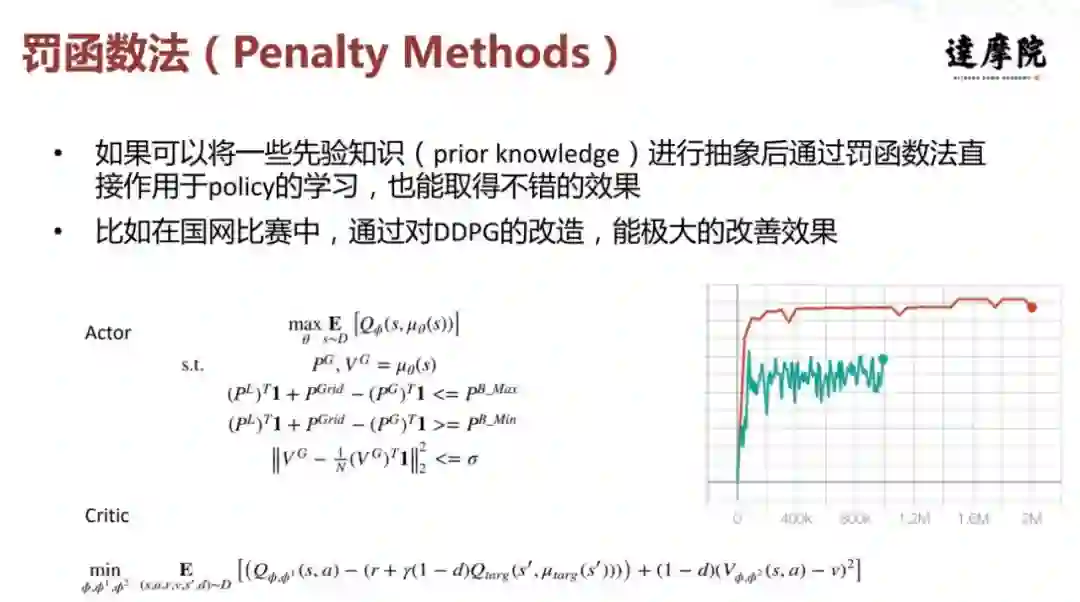 我们当时在国网比赛中对一个经典的 DDPG 进行了改造,可以看到下图右红色曲线的明显改进,无论是收敛速度还是获得收益,它的效果都会更好一些。当然需要你对策略做一些精巧的设计。