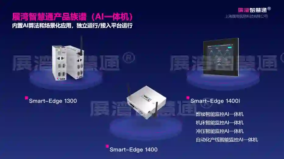 展湾智慧通®就是一个工业互联网与AI完美结合,采用了典型的三层架构——把采集到的数据汇聚送给平台;在平台进行数据清洗处理后,存储在时序数据库、内存数据库和关系数据库中;在对数据进行分析计算来实现实时看板和统计分析;最后根据历史数据进行模型和算法训练,再把算法下发进行边缘计算,确保实时性和可靠性。