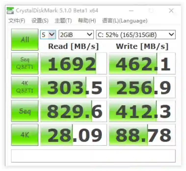 战 66 这次专门升级了 SSD,从原本的 256G 升级到了 360G PCIe SSD。这一点就很讨我的喜欢。一台需要经常在外工作的电脑,其实不需要太大的硬盘容量,读写速度是更重要的指标。这块 Intel 的 PCIe SSD,读写速度可以达到 1692MB/s 读,462MB/s 写,远超常规 SATA 接口的 SSD 。