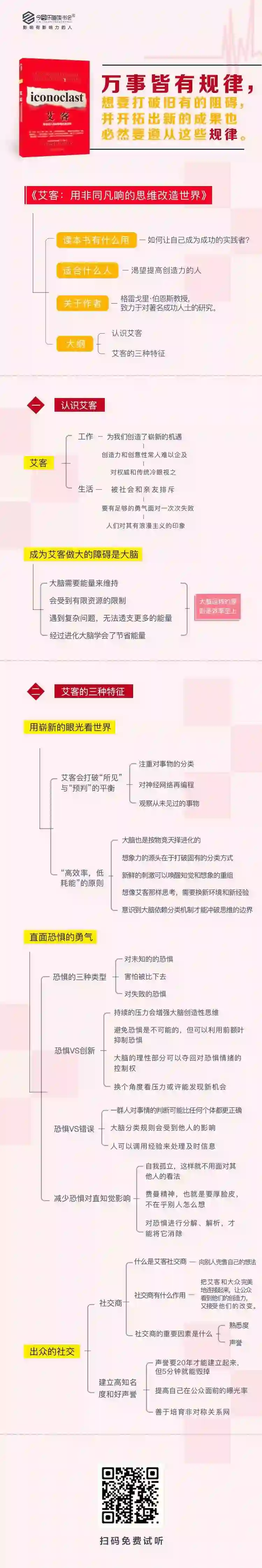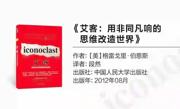 在《艾客:用非同凡响的思维改造世界》这本书中,现代社会里各个领域的艾客悉数登场,他们挑战固化思维,在严厉的批评前毫不畏惧,始终坚信自己选择了通向真理的道路。这本书把他们的反叛经历和创新过程,生动形象地演绎出来。通过这些艾客的故事,不仅能让我们清楚地了解到艾客的大脑是如何工作的;而且还能让我们清晰地发现,一个终极艾客的思维世界是如何成长起来的。
