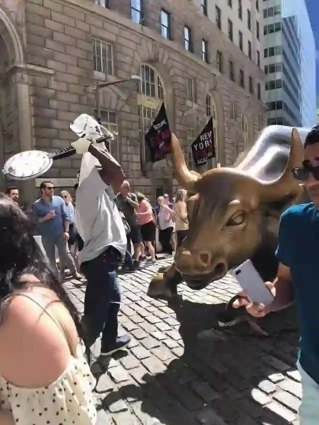 第二天清晨铜牛被记者和警察围得水泄不通,无数兴奋的人们也陆续赶来看这个从天而降的巨型雕塑,生动的造型和飞扬的风采立马赢得了人心。但是,这头3.4米高,4.8米长,重3.2吨的铜牛塑像使原本就不宽敞的人行道显得更加拥挤,且擅自放置铜牛也引发了纽约市政府的盛怒,政府用车把铜牛拖到郊区一个废旧车场。不过,在市民和新闻界巨大的抗议声中,市长同意请回铜牛。把它永久地放在交易所南边两条街的街角,莫迪卡拥有肖像权。