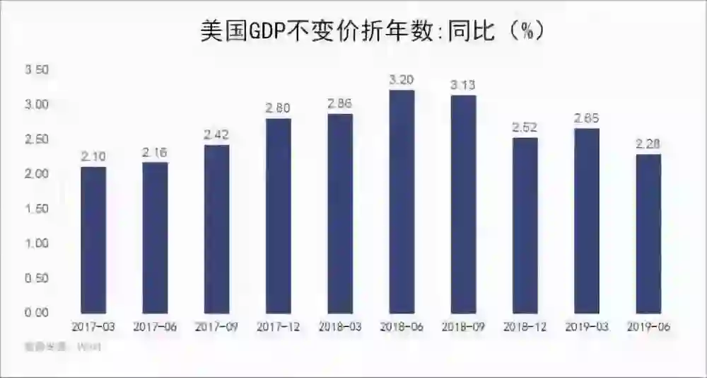 经济学家预计2019年全年美国经济增速将下降到2.3%,并预计三季度美国GDP增速仅有1.8%,远低于一季度3.1%的增速。