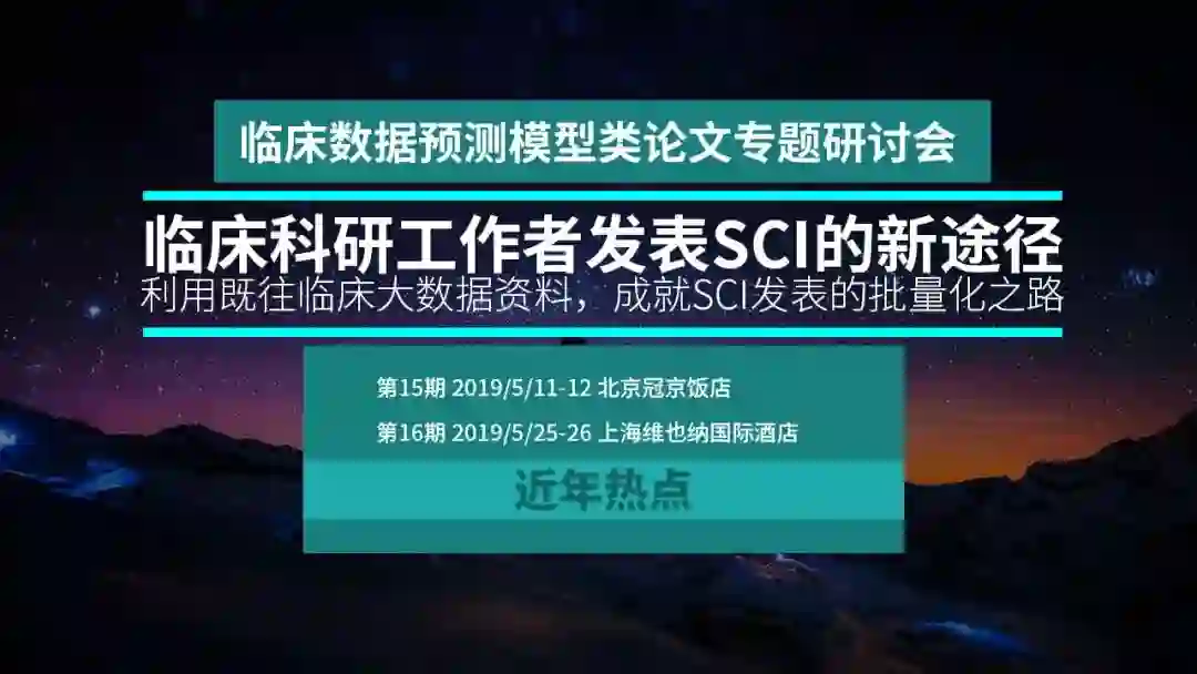 很多医生临床业务工作繁忙、收病人、写病例、上手术……几乎没有时间去进行做实验、跑电泳等基础科研,也根本不可能完成科研任务,更不用说批量发表SCI论 文。那么在临床任务繁忙几乎没有时间去做科研,同时不写综述、不写Meta分析、不做RCT、不进实验室,如何完成临床医生科研SCI高效输出?如何利用 既往临床大数据资料,成就SCI发表的批量化之路?临床预测模型就是利用临床数据资料发表SCI的套路模板,成为临床科研工作者发表SCI的高效途径。几 乎所有临床问题都可以建立预测模型。