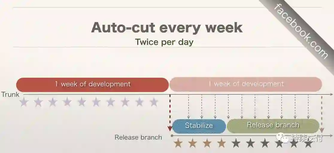 比如,Facebook Web主站的发布周期是每个工作日两次发布。