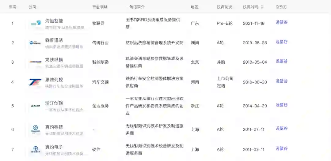 值得注意的是,本文的主角远望谷,本身也是“RFID”赛道的投资者,