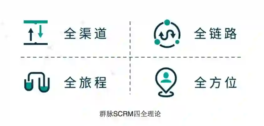 从整个产品模式上来说,群脉打造的是“全渠道”、“全链路”、“全旅程“、“全方位”的用户生态数字化运营平台。全渠道是指,群脉SCRM通过一物一码、门店线下活动、自营媒体渠道、电商渠道、支付渠道、广告等全渠道连接企业线上、线下用户触点,沉淀用户大数据。
