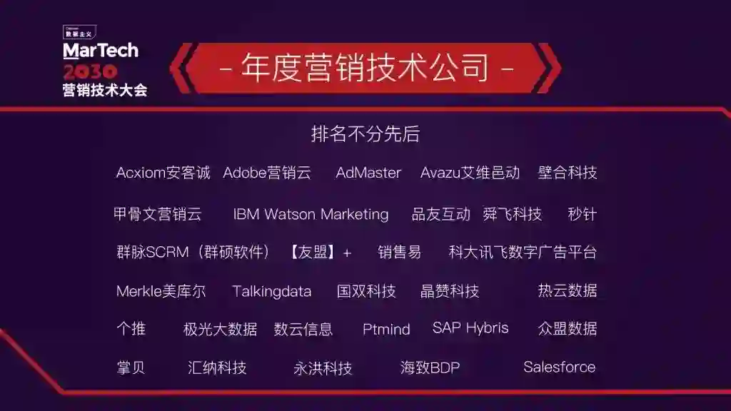 在本周举办的MarTech2030 营销技术商业论坛上,数据主义Data-ism成为了2018年的主题。在国内第一个聚焦营销技术和数据的大会上,主办方SocialBeta&DMA多马正式发布了《中国营销技术生态图》及年度/新锐营销技术公司榜单,来向品牌主及企业展示国内MarTech领域的生态和解决方案。
