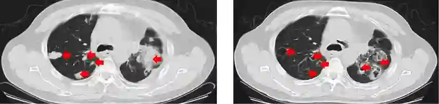 (患者服用阿帕替尼后肺部病灶形成空洞)
