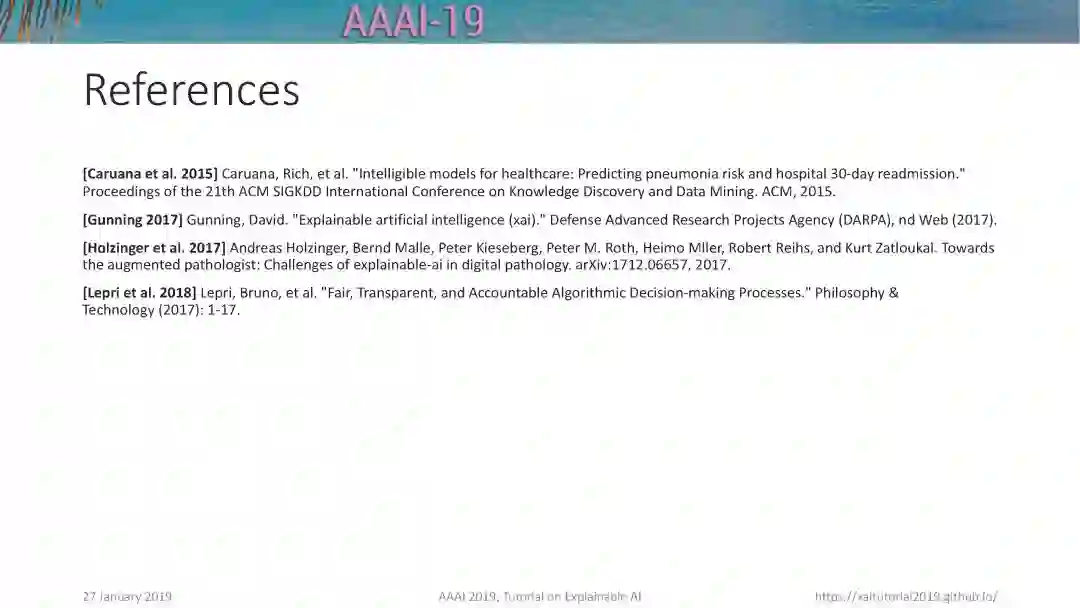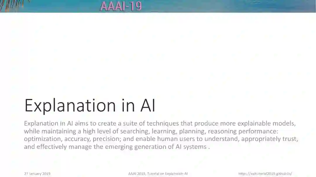 AAAI 2019 tutorial: 可解释AI –从理论到动机,应用和局限性