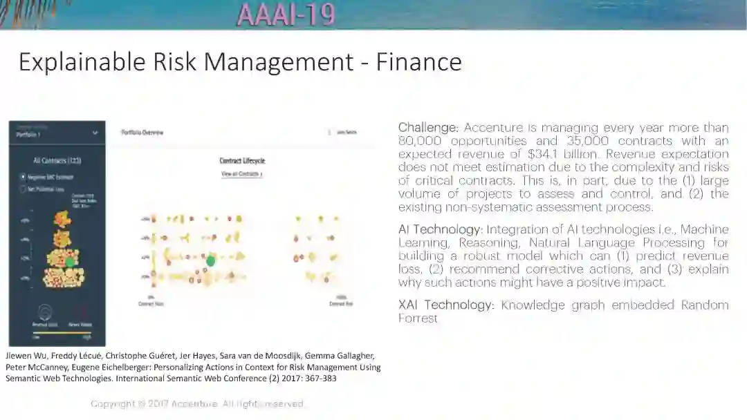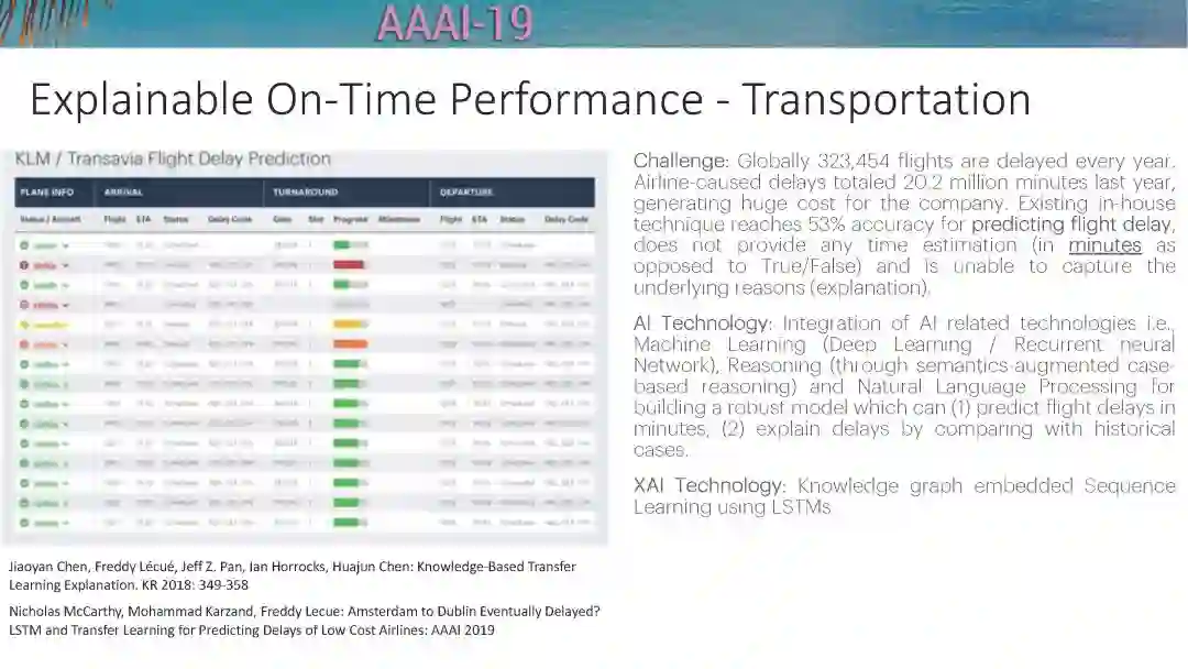 我们展示了应用解释技术的真实示例。我们关注一些使用案例:i)具有内置解释功能的可解释的航班延误预测系统; ii)基于知识图的语义推理,预测和解释企业项目风险层次的大范围合同管理系统;iii) 500多个城市的大型组织员工异常报销的识别、解释和预测的费用体系。