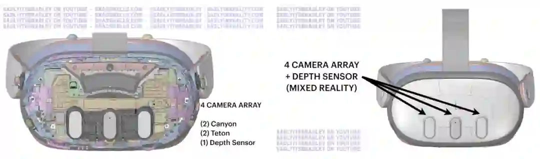 前部4个RGB透视相机模组(2个Canyon相机、2个Teton相机),以及1个深度传感器。