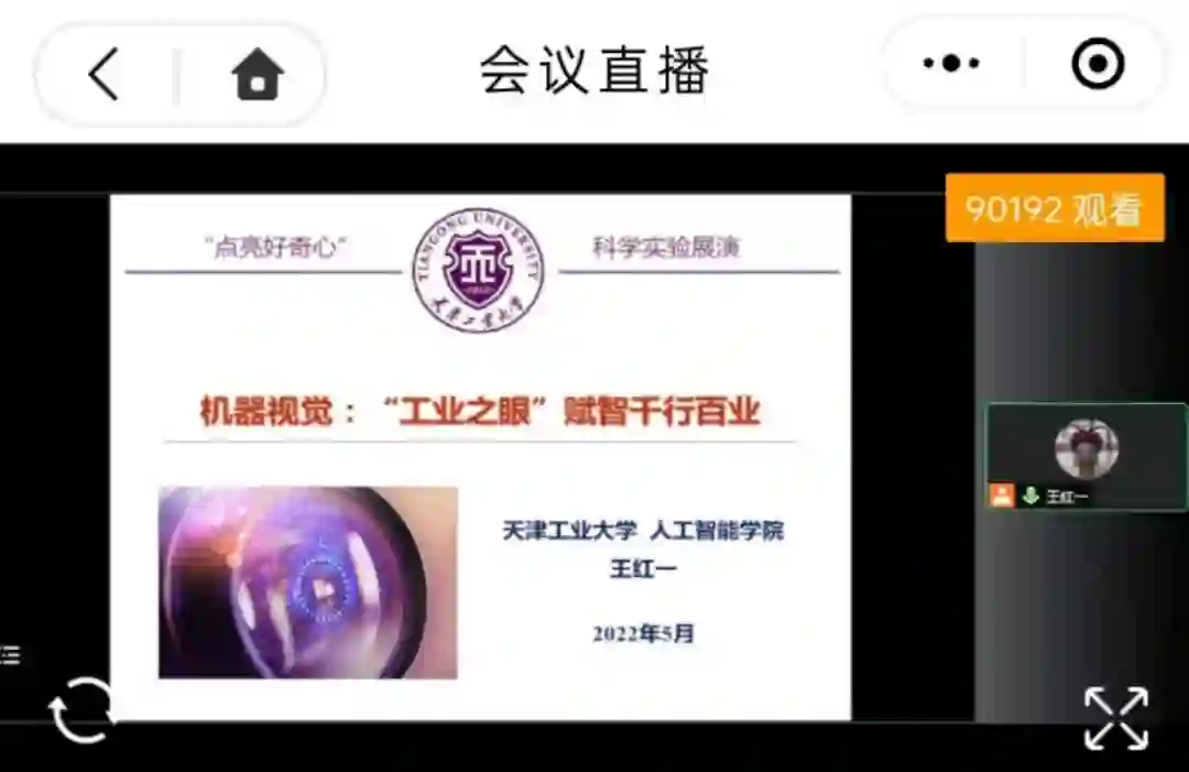 由中国图象图形学学会和天津市科学技术协会主办,中国图象图形学学会科普与教育工作委员会、中国图象图形学学会视觉检测专委会、天津工业大学控制科学与工程学院、天津工业大学人工智能学院共同承办的“点亮好奇心”科学成果展示活动,于2022年全国科技活动周(2022年5月21-28日)顺利举办。本次活动也是天津市第 36届科技周活动之一。