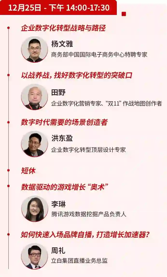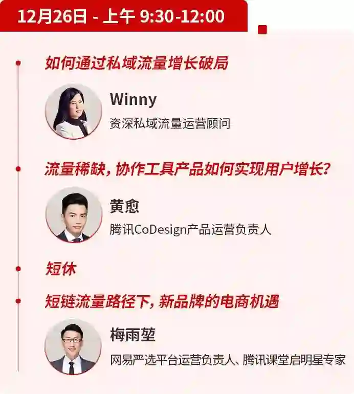 本场大会邀请了 14 位来自腾讯、网易等互联网头部企业的资深运营增长操盘手,还有在电商、直播、新零售、新消费、游戏、社交、私域、数字化等等领域深入多年的行业专家。