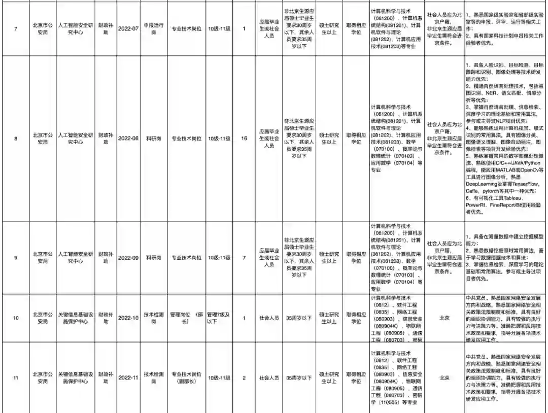 近日,北京市公安局发布“人工智能安全研究中心”和“关键信息基础设施保护中心”2022年公开招聘工作人员公告。