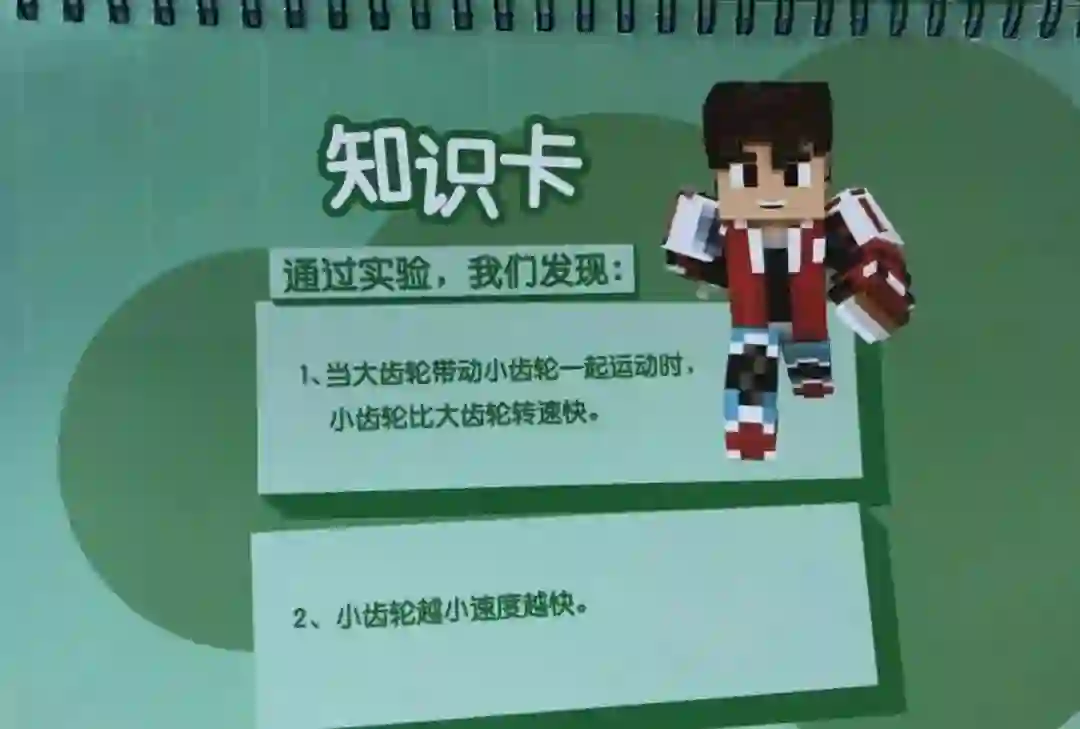 最后是总结环节:会给孩子一个知识卡片。知识卡片上只会有2-3个核心知识点,也就是“加速传动”这一部分的精华。