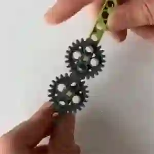 这样,一步步,不仅把能实现加速传动的常见齿轮组合都实验完了,同时在这个过程中,通过观察总结,孩子可以更深刻地理解大小齿轮运动的规律。