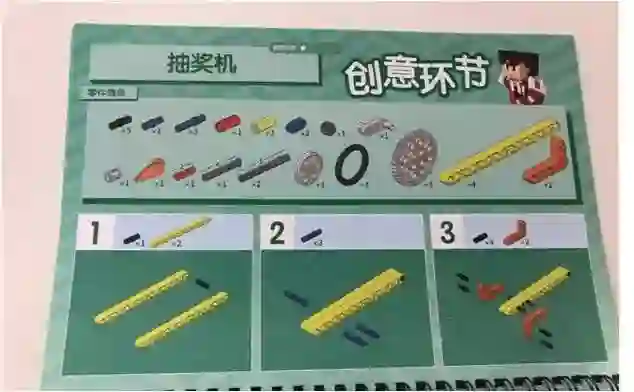 最后,进入到创意环节的搭建任务——自己做一个抽奖机,这个其实是利用刚刚实验过的加速传动这样的核心点,去做一个现实中会见到的物体。