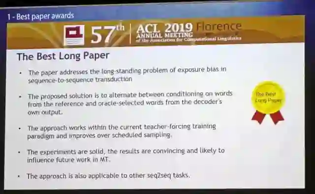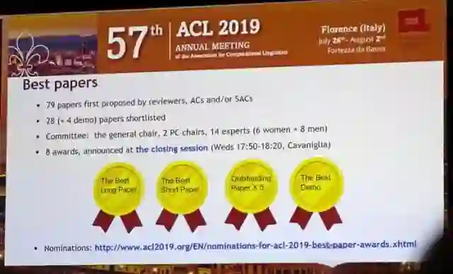 ACL2019最佳论文出炉,共八篇文章获奖。来自中科院、华为诺亚方舟实验室等机构的论文获得了最佳长论文;一篇来自南京理工大学论文获得了杰出论文奖。除此之外,还有很多华人学者都是获奖论文的作者。由此可见,国内研究者在 NLP 领域还是取得非常不错的成绩。