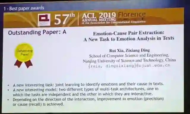 南京理工大学夏睿团队和港科大的 Pascale Fung 团队分别获得了杰出论文奖。