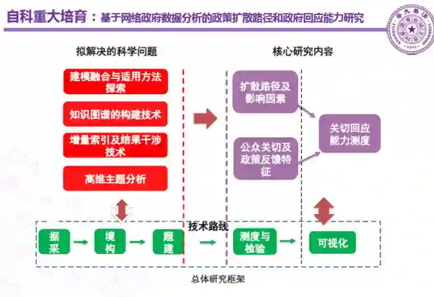 2017年1月,国家自然科学基金委关于大数据的重大研究计划列了一个培育项目“基于网络政府数据分析的政策扩散路径和政府回应能力研究”。这个项目是对以政府网站数据为主的一批数据进行系统性分析,构建一些需要解决的关键问题,如建模、建模融合、适用方法、知识图谱、以及增量式搜索等。重点关注两个应用问题,一个是信息公开的传播效果,另外一个和回应关切有关,如清华大学新闻传播学院沈阳老师在做公共舆情指数,按照地域、时间发布公众舆情关注的热点。