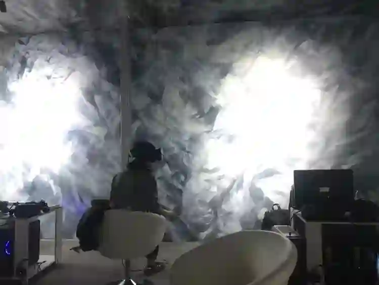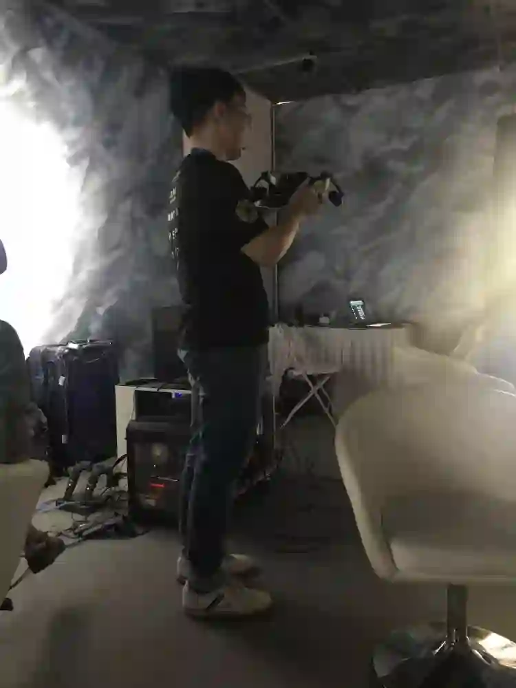 如果要挑问题,我很想吐槽工作人员发的一次性眼罩,我旁边的一个姑娘也遇到了相似的问题。因为它真的太松了,以至于当在套上VR头盔的时候,眼罩会不受控制地往下出溜,遮挡视线。