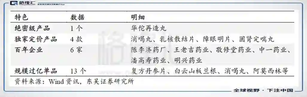 公司拥有13家中华老字号药企(含控股子公司和合营企业),其中一个绝密级产品;6家为百年老字号;4个独家定价产品;13个过亿单品,在华南地区乃至全国都拥有明显的中成药资源优势。